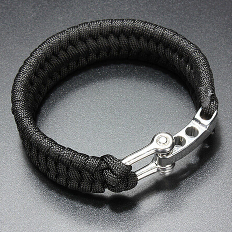 Black ParaCord Rope Outdoor Survival Bracelet Camping Steel