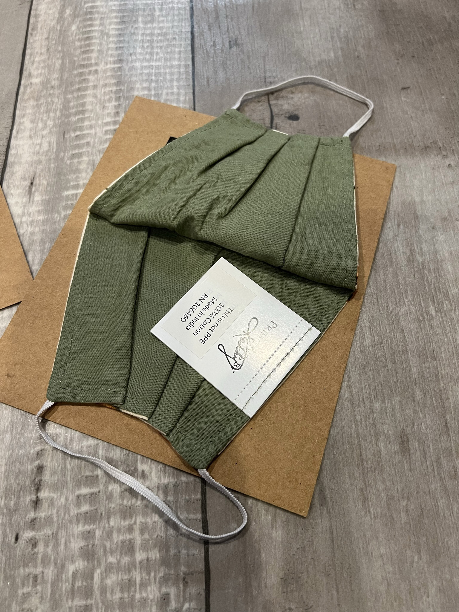 A two-ply pleated cotton face mask with elastic earloops for ultimate comfort. One size fits most. Our masks are machine-washable and reusable. Intended for general, non-medical purposes. Not a replacement for medical-grade personal protective equipment (PPE). Not intended for use by health care professionals or for use in a health care environment. Not designed or intended to mitigate, prevent, treat, diagnose or cure any disease or health condition.